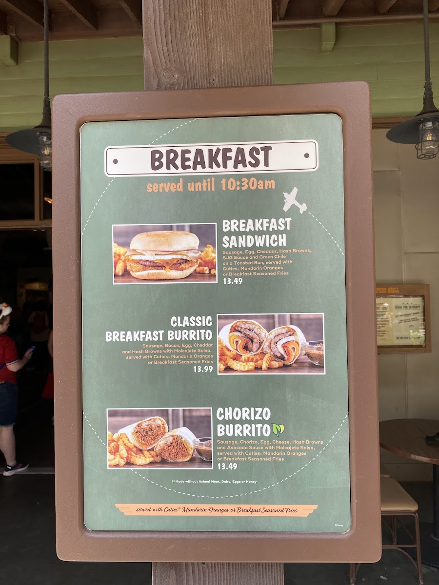 For breakfast enthusiasts, indulge in their Breakfast Seasoned Fries or a hearty Breakfast Kids' Disney Check Meal featuring a turkey bacon, egg, and cheddar sandwich, complete with a refreshing Cuties mandarin orange. The flavor-packed sides, like crispy Bacon and Hash Browns, are perfect complements.
